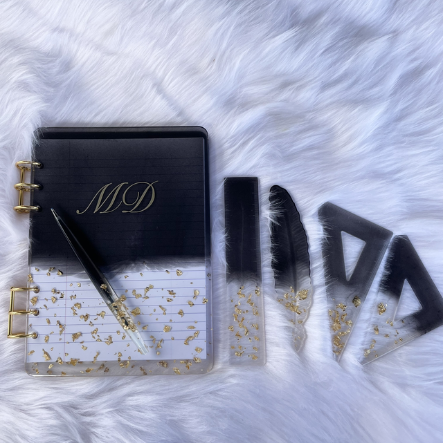 fournis avec stylos, règle, marque page et équerre