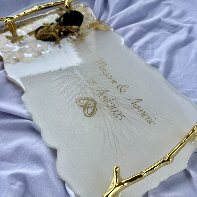 Plateau Personnalisable avec inclusion bouquet de mariage,